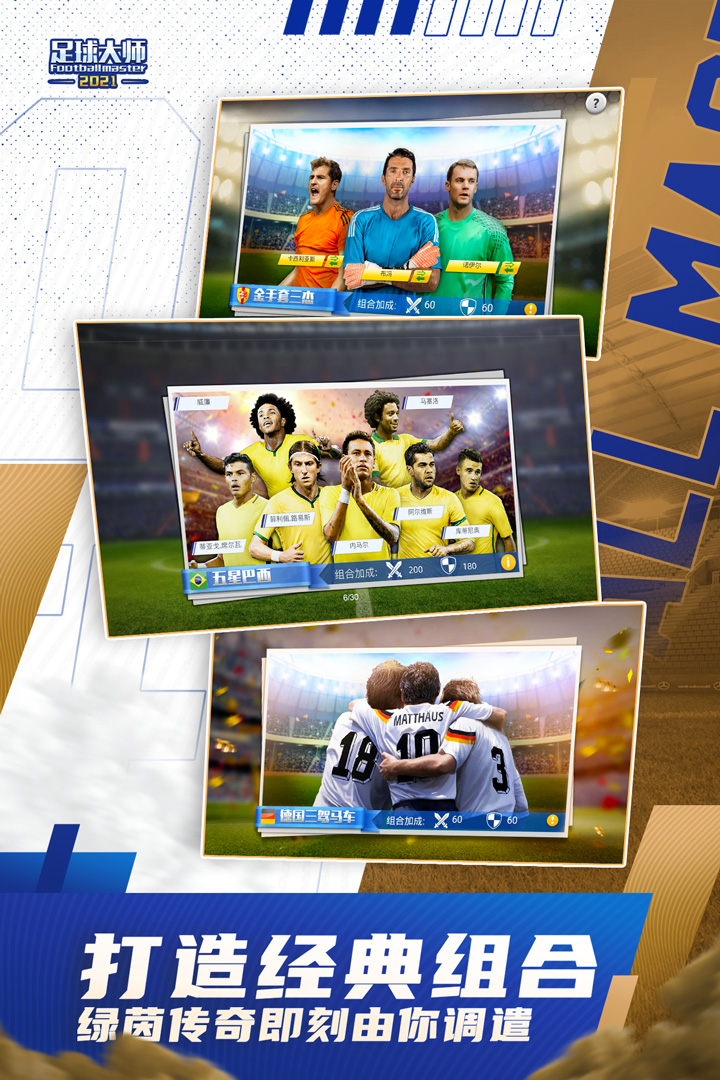 5000真实球员数据,媲美最真实全3D比赛,马赛回旋、蝎子摆尾,TIKI-TAKA、过顶直塞等绝妙动作都在这里。新老球星齐上阵,梅西、C罗、齐祖、枪王之王、外星人,组建你的梦幻阵容。这里不仅仅有球星,有激情,更有满满的足球回忆!