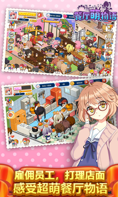 《餐厅萌物语》(原萌娘餐厅2)是一款二次元风格的模拟经营及卡牌育成手游,含有丰富的动漫元素。游戏中你将作为店长,在小助理陪伴下经营餐厅,和朋友们进行丰富的社交活动,体验梦幻般的虚拟人生,书写妙趣横生的餐厅物语。