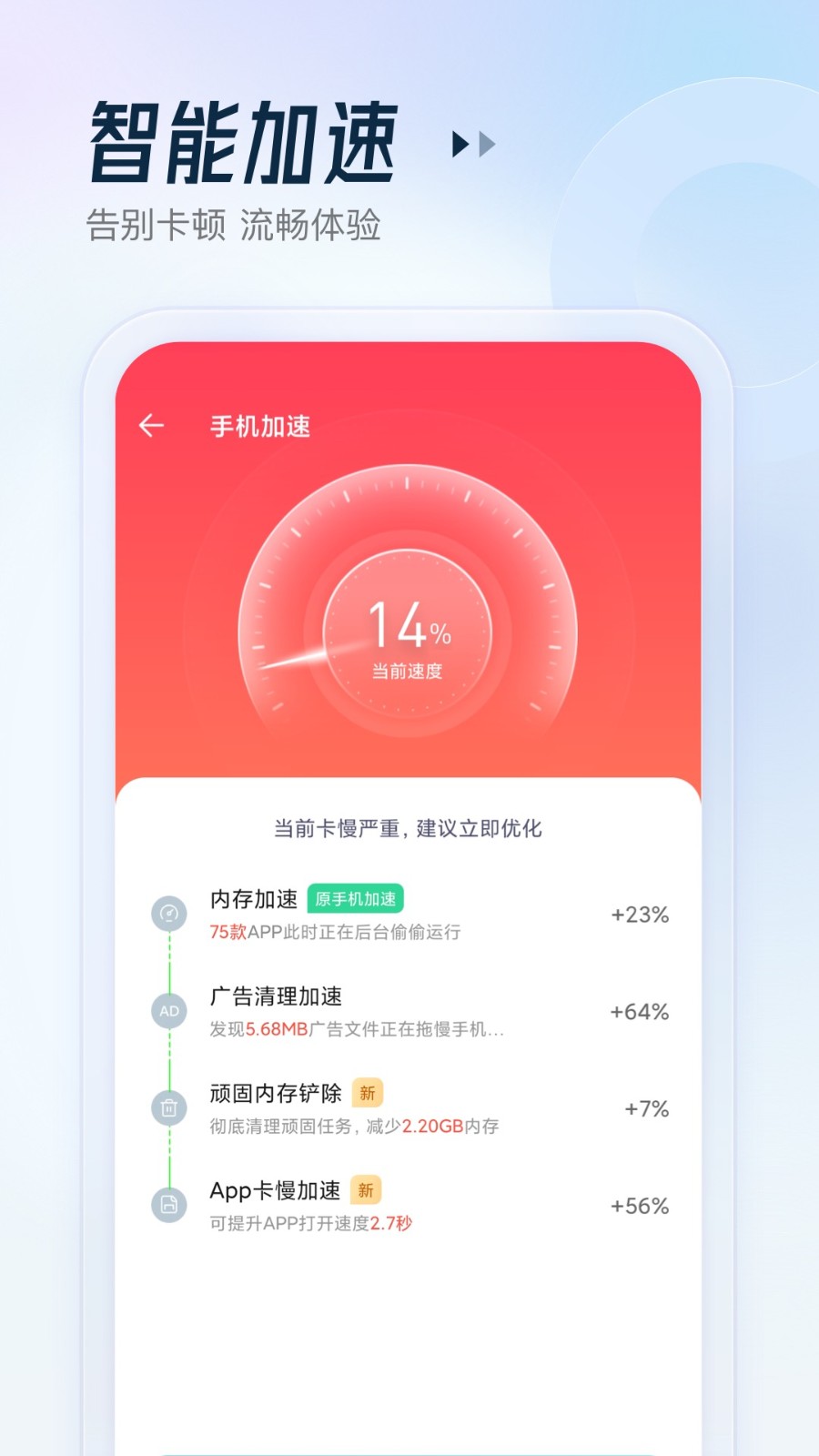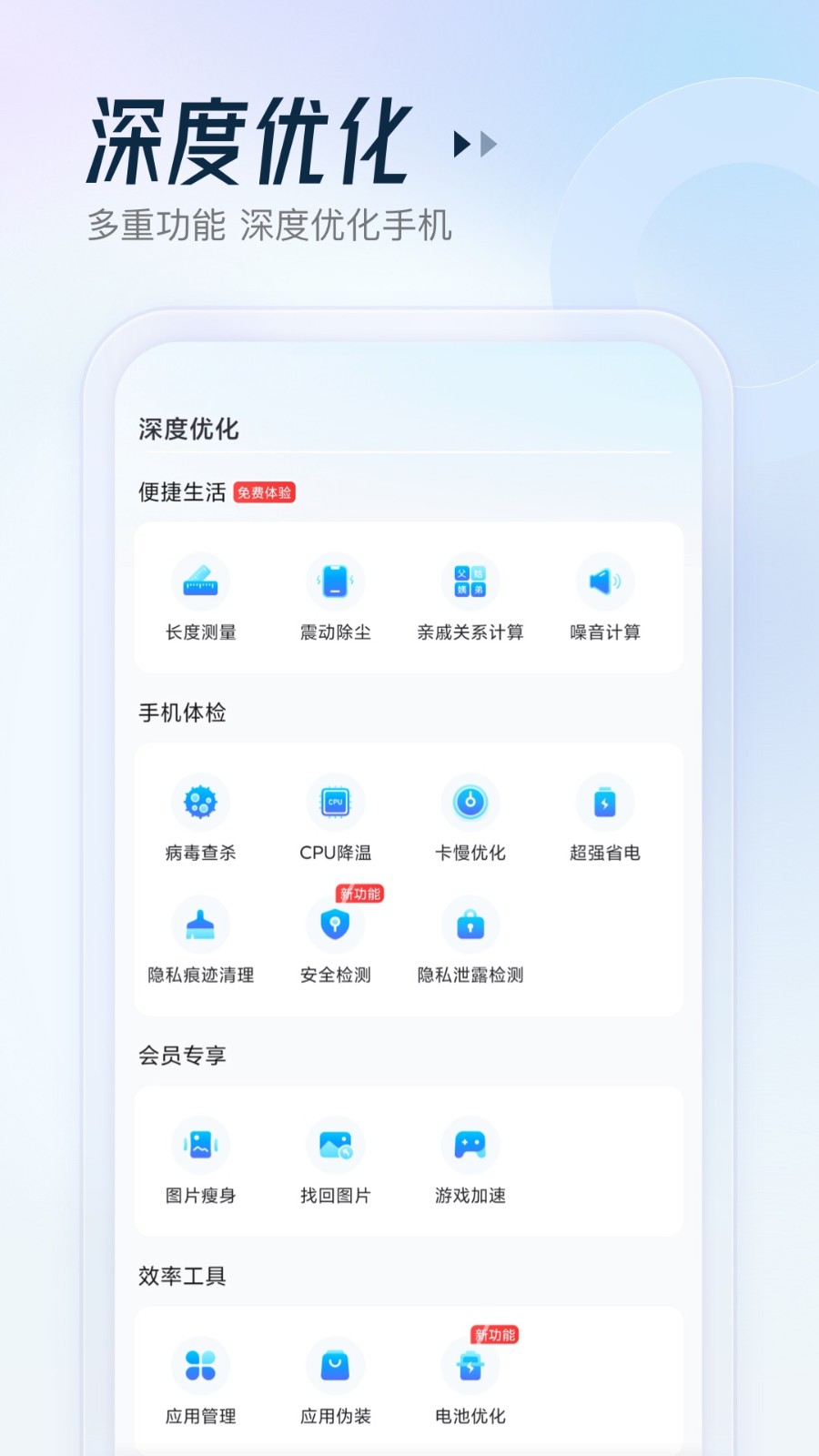 手机一键加速可释放后台内存,智能省电模式能延长续航时间,隐私防护功能则为用户数据安全保驾护航。同时,搭配多样化工具箱与可视化空间管理模块,让文件分类、大文件查找等操作更便捷,全方位提升手机管理效率,高效满足用户日常使用中的多元需求。