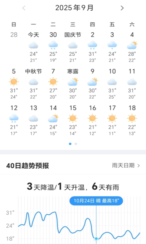 信息全面: 短至24小时,长至40天,您关心的天气信息和生活指数一站集全。