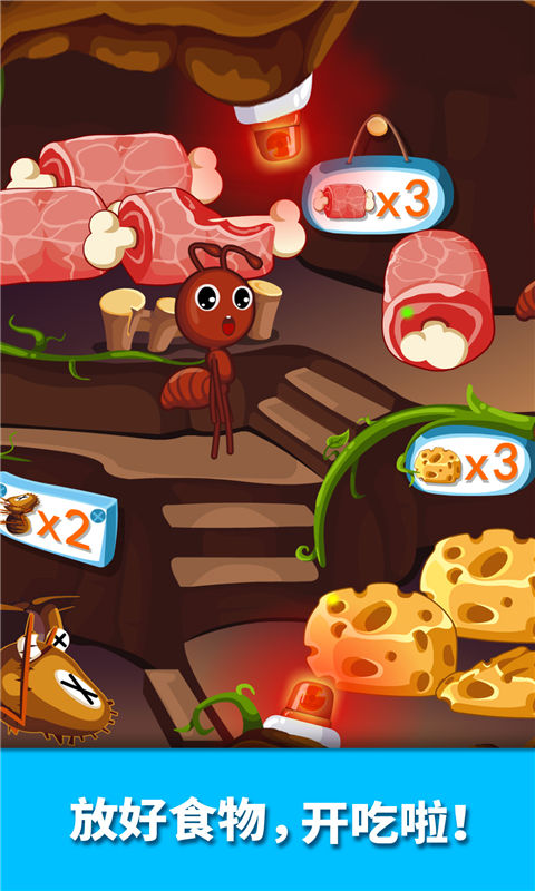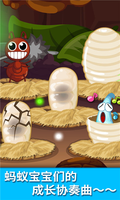 等等,地面上还有辛勤觅食的工蚁们,糟糕!它们遇到抢食物的坏家伙啦,怎么办?话不多说,宝宝快打开【宝宝认蚂蚁】App和兵蚁一起帮它们渡过难关吧!