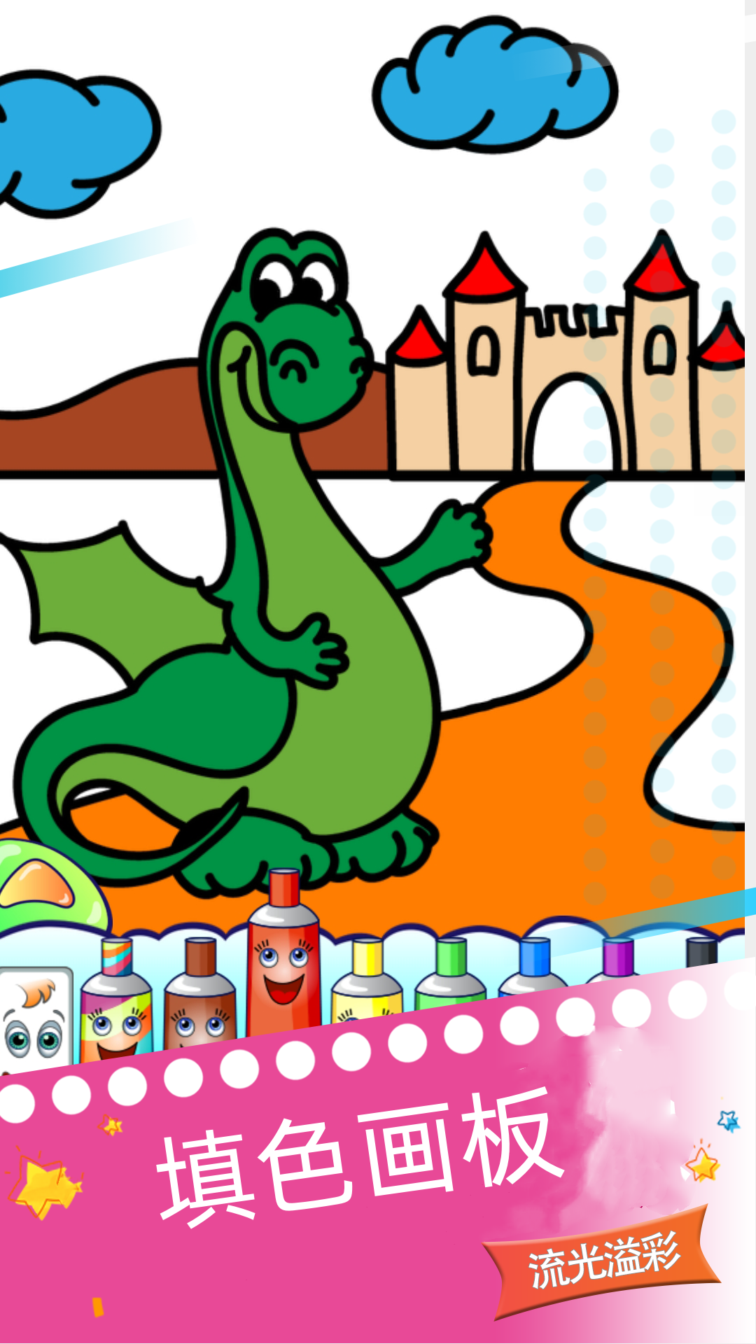 这是一款帮助宝宝认知色彩的世界,让您的宝宝快乐学习,健康成长。从小培养宝宝的认识能力,让宝宝在玩乐中认识色彩缤纷的世界,有恐龙世界、动物世界、花草树木、花小狗、小猫、老鼠、小鸟、兔子、蜗牛、变色龙,企鹅、青蛙等各种小动物,神话故事:女娲补天,大禹治水,神农氏尝百草,夸父逐日,西游记,盘古开天,精卫填海,愚公移山,嫦娥奔月等,各地名胜古迹:万里长城,天安门,金字塔,天坛,有涂鸦模式、填色模式、填块模式等适合不同阶段的小朋友,与其给小孩动漫电视,还不如让宝宝学习教育游戏能对小孩有更多教育效果,坐上教育儿童巴士,让我们的莉比小公主、快乐小王子健康快乐成长。