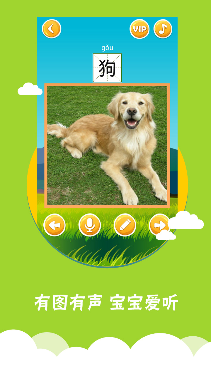 2. 真人发音:每个识字课程都配有由专业播音员配音的普通话发音,宝宝可以点读、跟读等。