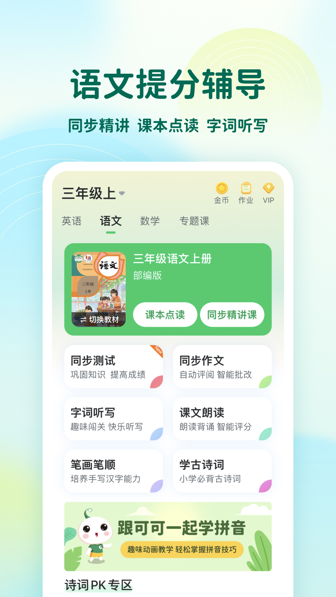 可可宝贝-中小学语文数学和英语学科智能提分辅导,让孩子提分更高效,同步教材覆盖全国各地小学,五星好评如潮。