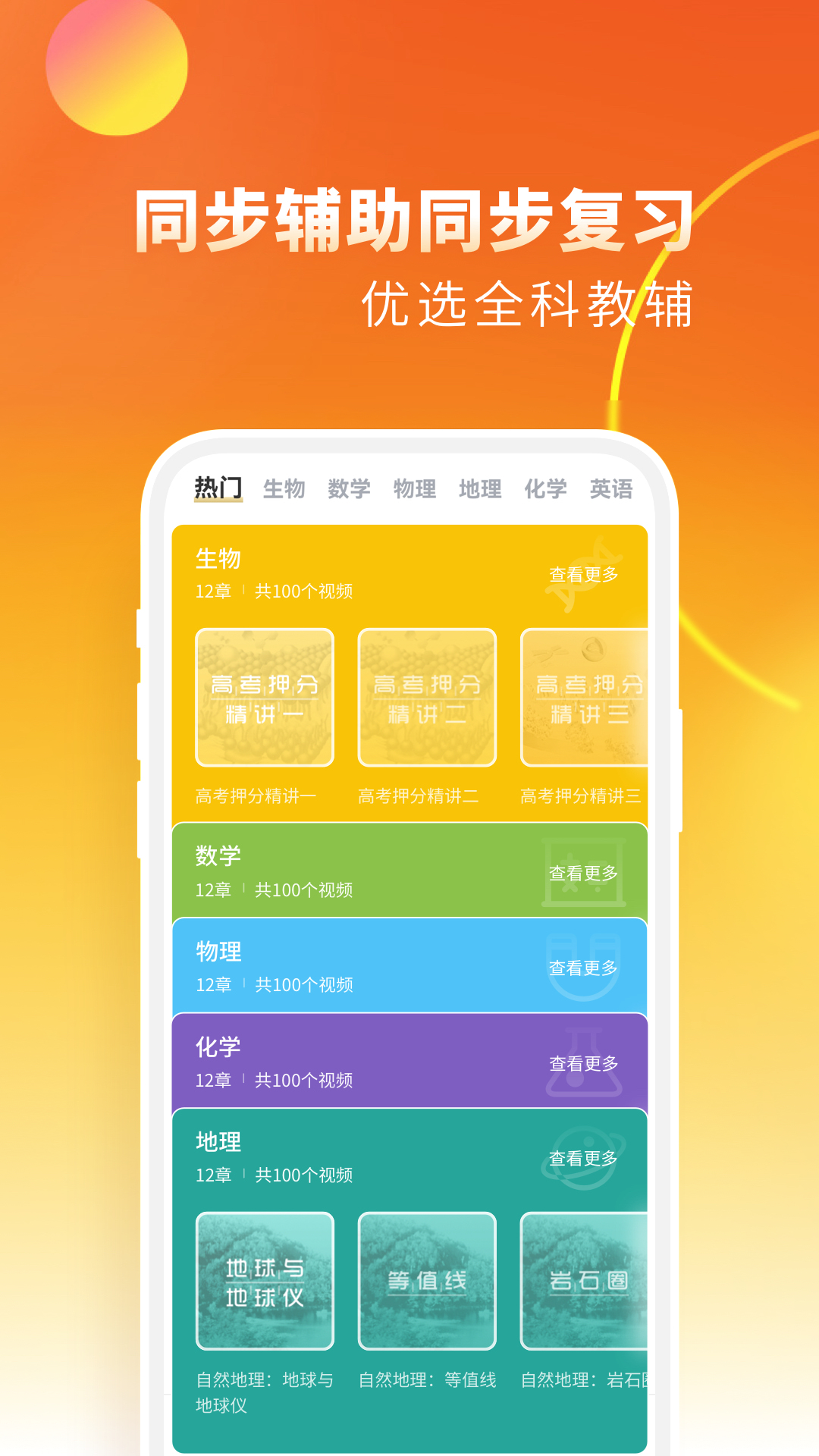 覆盖高中数学、高中语文、高中英语、高中物理、高中历史、高中化学、高中政治、高中地理、高中生物九大科目!助你一圆高考梦!