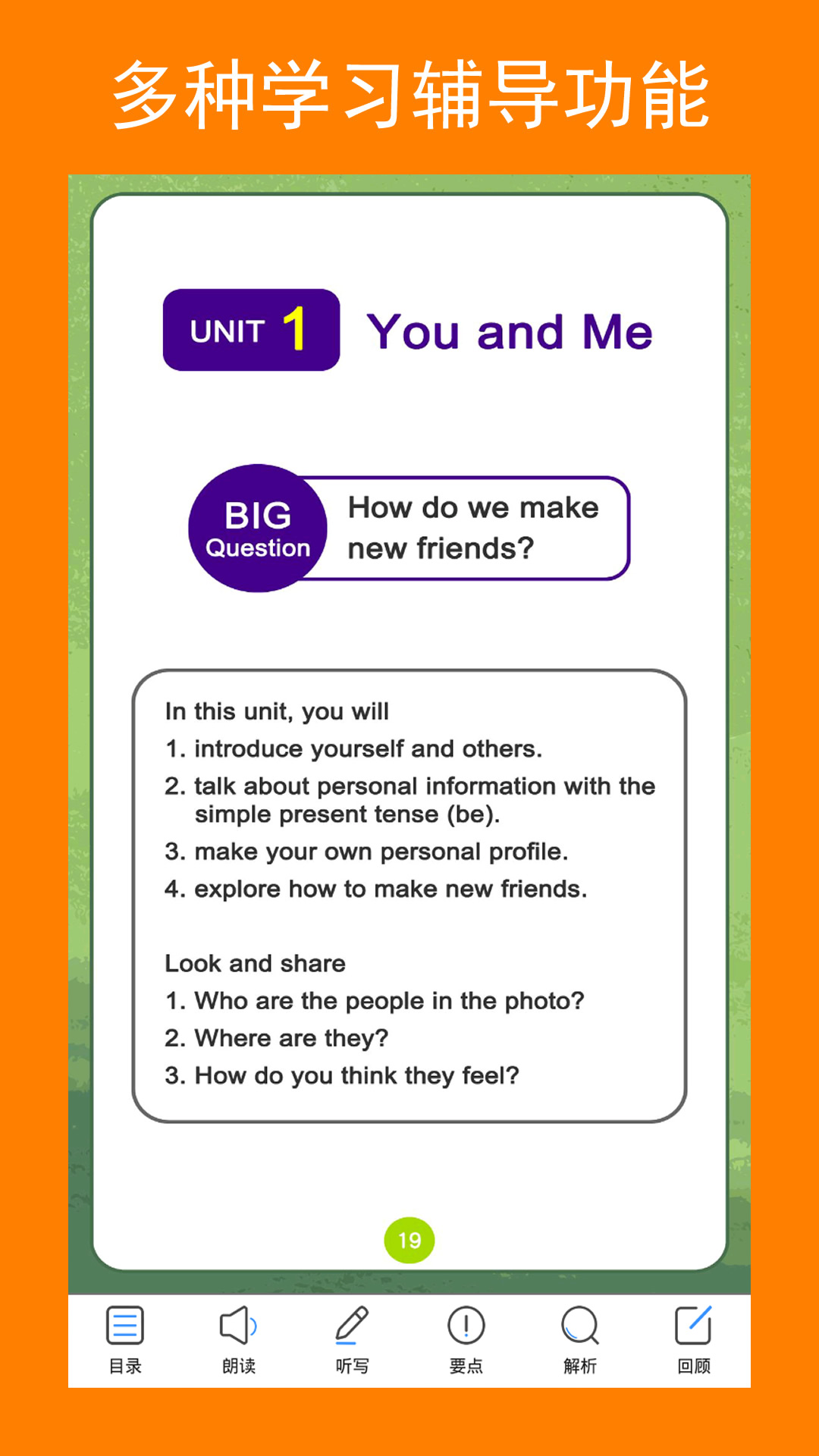 随时随地课本同步点读,轻松记住课本单词,名师讲解要点……与人教版初中英语七年级上册同步设计的学习辅导APP,拥有同步点读、单词巩固、口语增强、语法要点讲解,让你在离开课堂后,轻松自在随时学习巩固,可以在短时间内达到听说读写全面提高的效果。