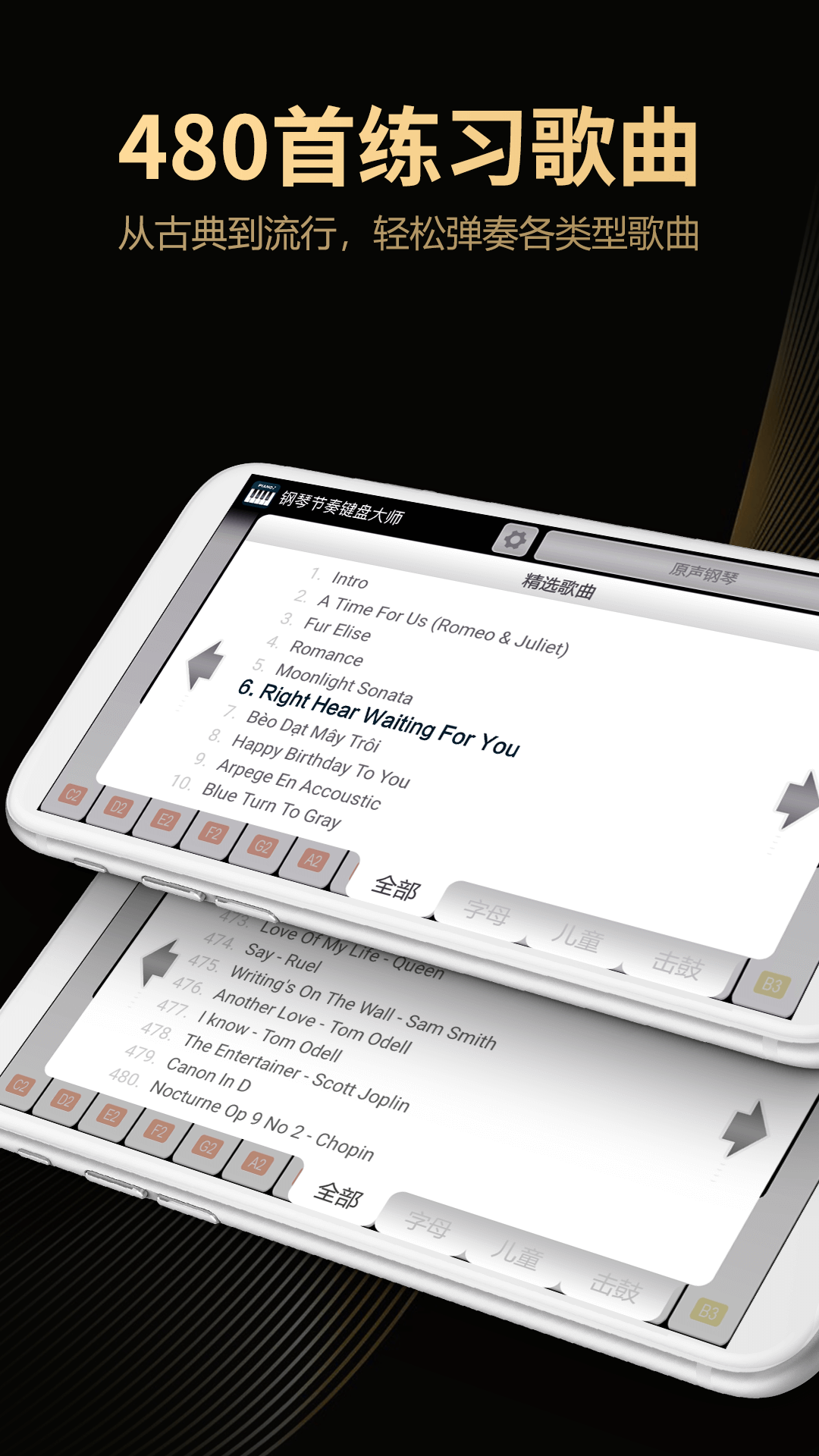 钢琴节奏键盘大师-钢琴陪练(finger piano)是一款智能钢琴模拟器乐器,内置真实的钢琴音色,它能把你的手机变为一架微型智能钢琴,帮您学钢琴,钢琴练习,了解钢琴谱,认识钢琴教学,熟悉钢琴键盘、钢琴节拍,组建自己的库乐队、酷乐队