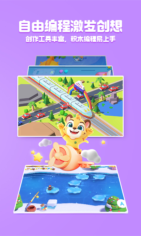 通过闯关课看、学、练三个环节学习新知识,在趣味互动答题中应用所学;通过创作课看、玩、做三个环节体验编程乐趣,创作属于自己的编程作品,学以致用;