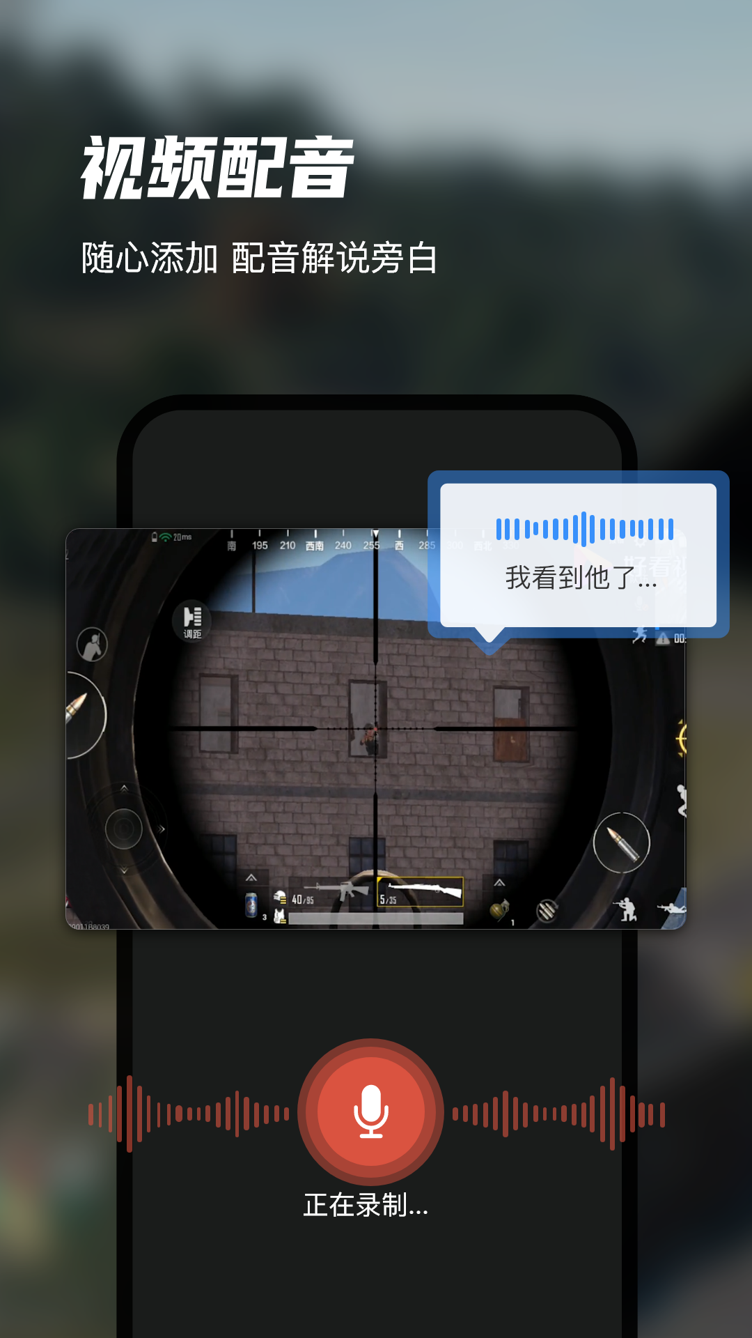 - 流畅录制王者荣耀、和平精英、QQ飞车、穿越火线等手游,分享游戏技巧,制作游戏攻略,成为游戏达人;