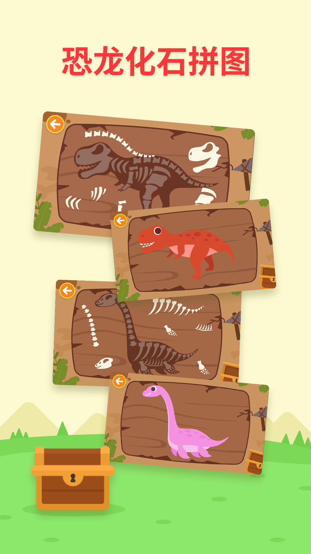 4、增添恐龙化石拼图益智模块,加深宝宝对恐龙的认知;;
