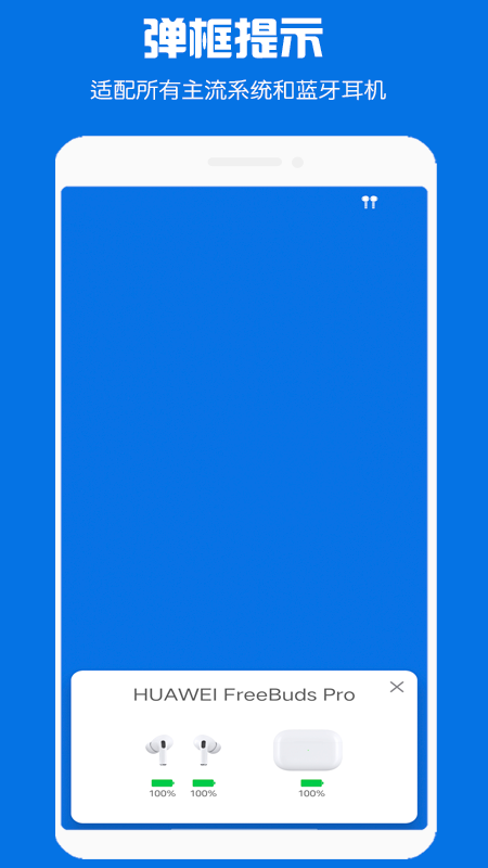 可通过弹框、toast提示、通知栏提示等方式提示蓝牙耳机的链接状态和电量变动情况。及时准确,方便快捷。弹框展示动画流畅,信息准确,可弥补蓝牙耳机不能弹框的遗憾