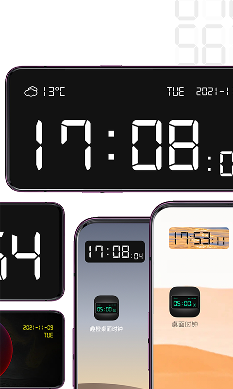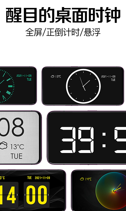 ▲全屏时钟+酷炫皮肤▲悬浮时钟