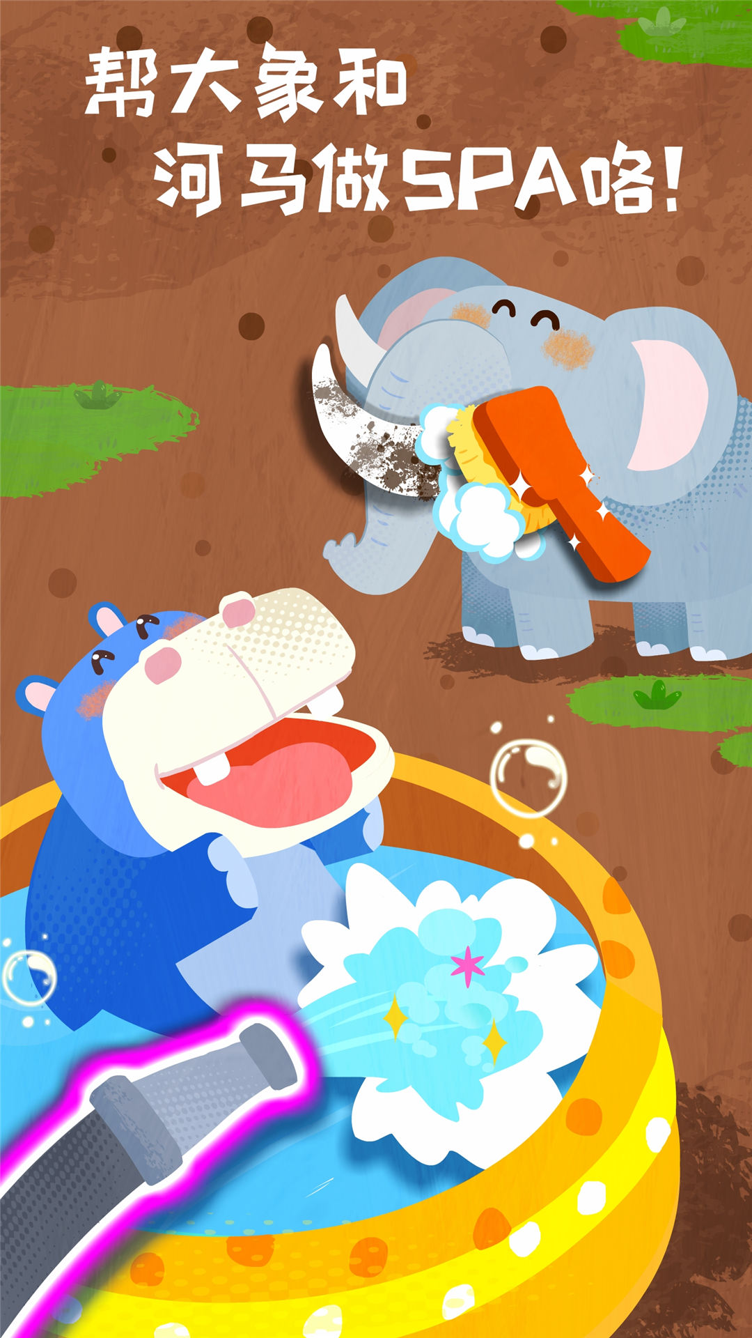 急救完成,给动物做SPA护理!刺猬的刺掉光了,制作芦荟胶,涂抹在刺猬皮肤,按摩吸收长出新的刺。大象想给象牙做美容,宝宝快来刷洗,点点象鼻,冲走泡泡!