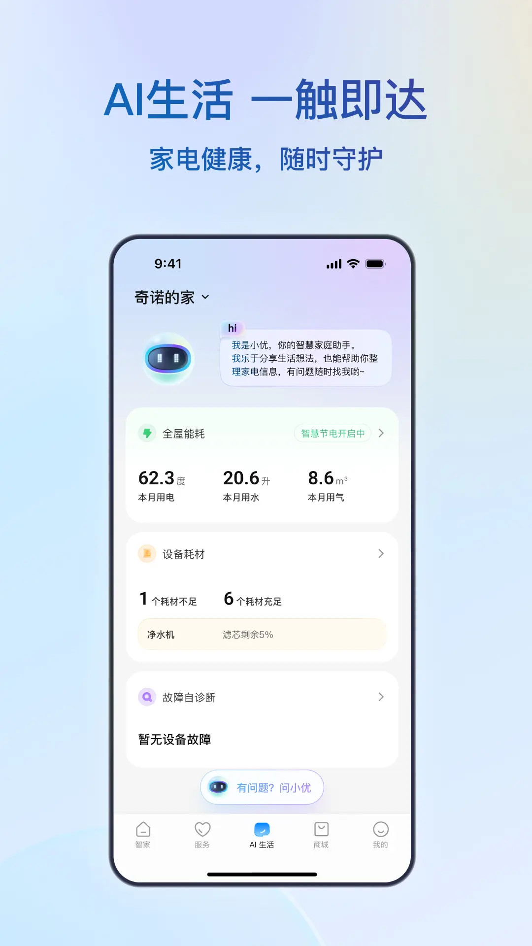 提供家电购买、送装、保养、维修等全流程服务,可轻松查询维保进度和家电购买及保修期等信息,做您家电全生命周期智能管家。