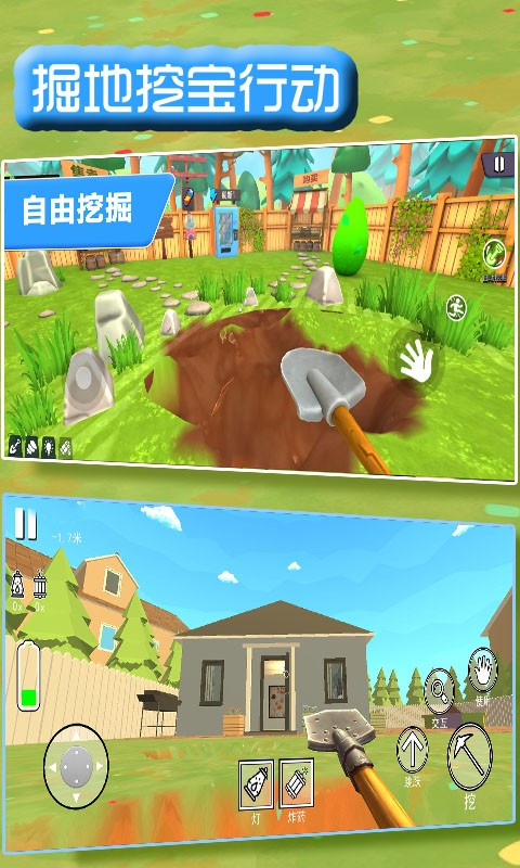 从你的院子出发,开始一场终极的地底探险!手持铲子,你的目标是挖出一条通往地下深处的隧道,寻找隐藏的宝藏、奇异的遗迹,甚至是神秘的秘密通道。你是否能挖掘出传说中的无底洞,发现地球最深处的秘密?