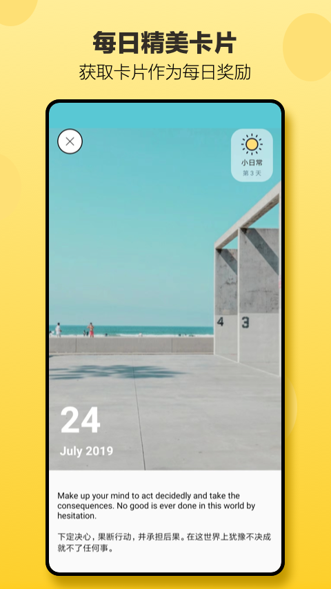 3.每天都会推送一张卡片,当今天所有习惯都完成之后即可获得该卡片,并收藏起来。您可以在卡片的背面记录该日的感想,激励自己。