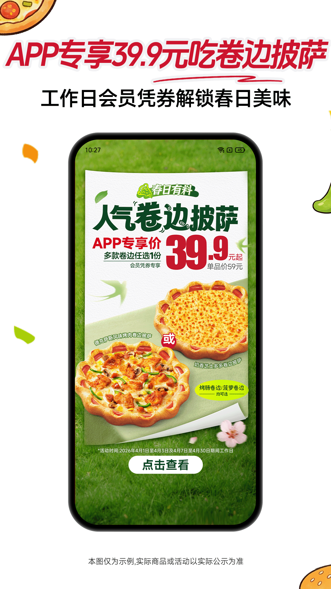 工作日卷边披萨-APP专享39.9元起,多款卷边凭券任选1份
