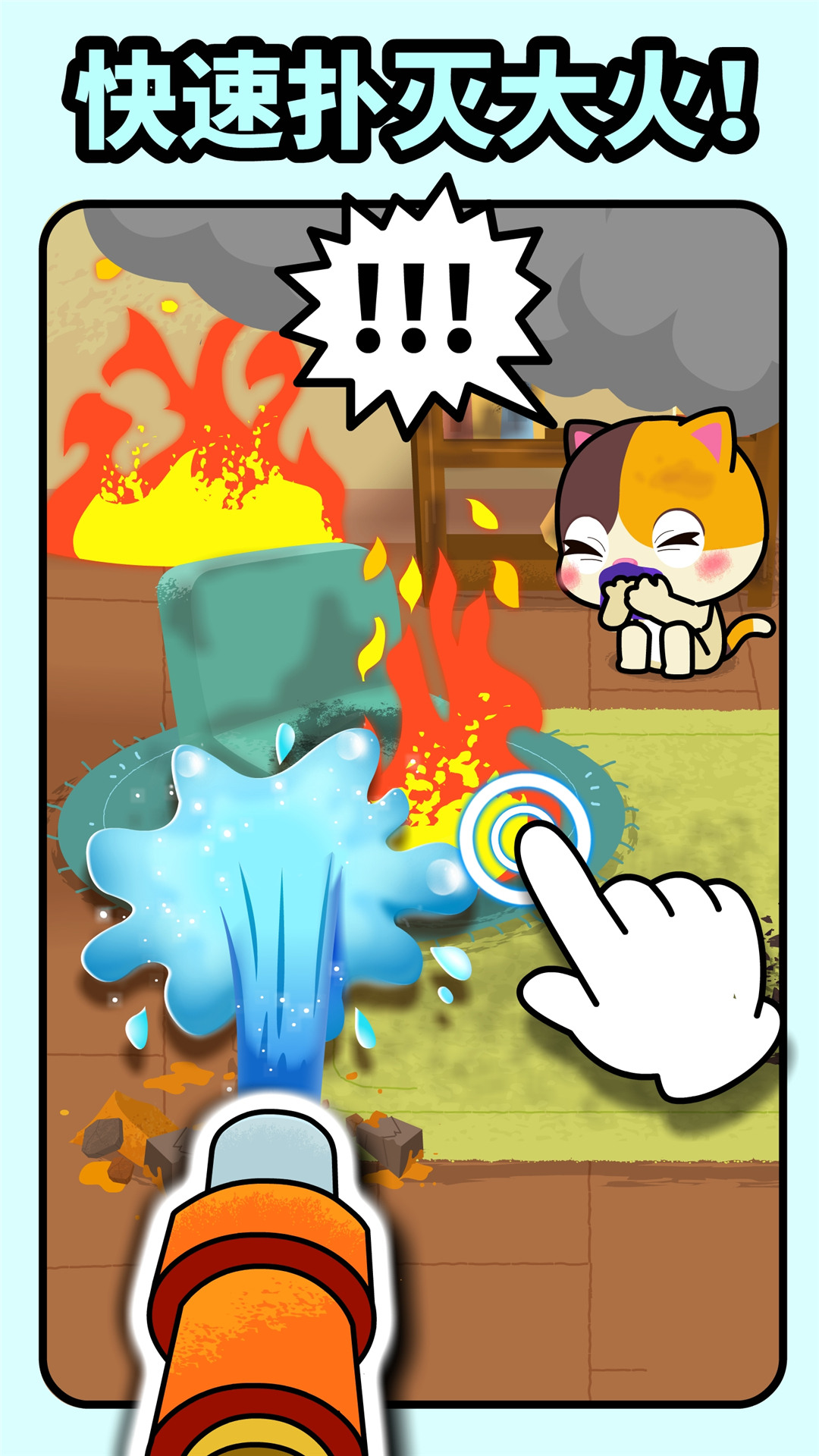 森林火灾:寻找森林中隐蔽的起火点,用水枪、风筒等工具灭火!(锻炼专注力)