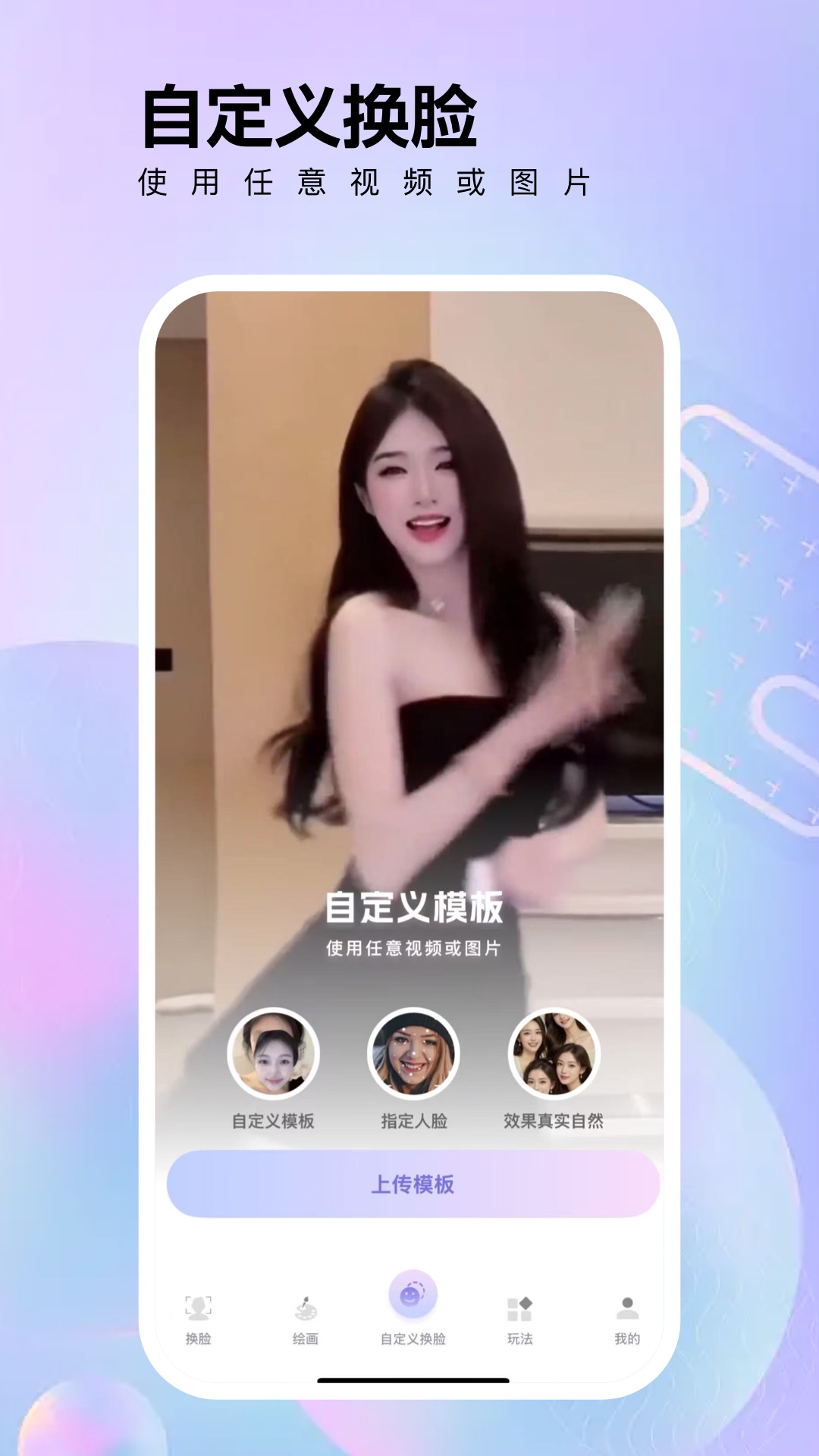 新增自定义换脸,可以自己上传视频或照片进行ai合成换脸换妆,畅玩AI世界的乐趣
