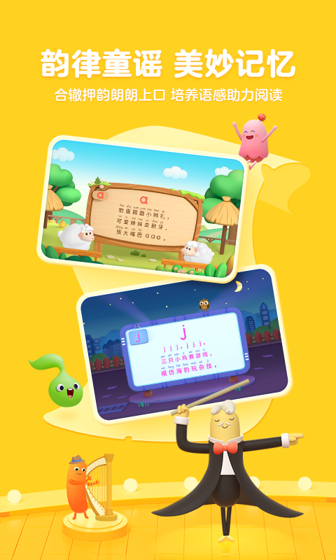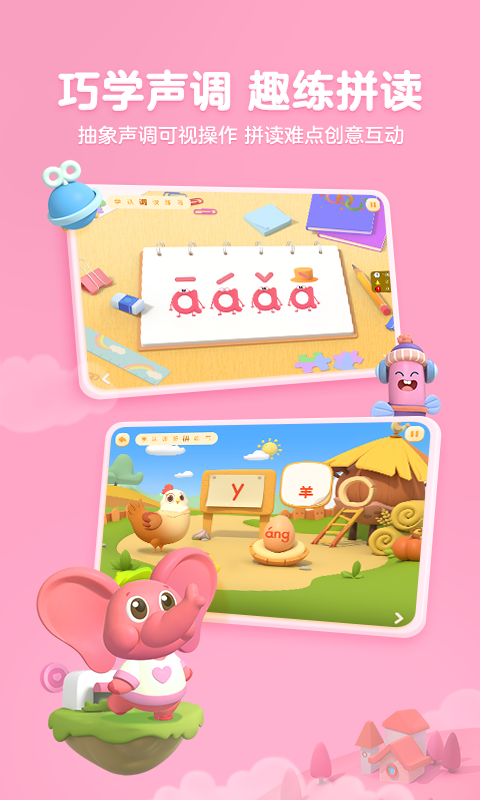 帮帮拼音遵从孩子认知发展规律,以趣味场景激发孩子学习兴趣,以丰富交互支持孩子自主学习,让孩子自主掌握23个声母、24个韵母、16个整体认读音节的认、读、拼、写,帮助孩子轻松攻克拼音难关。