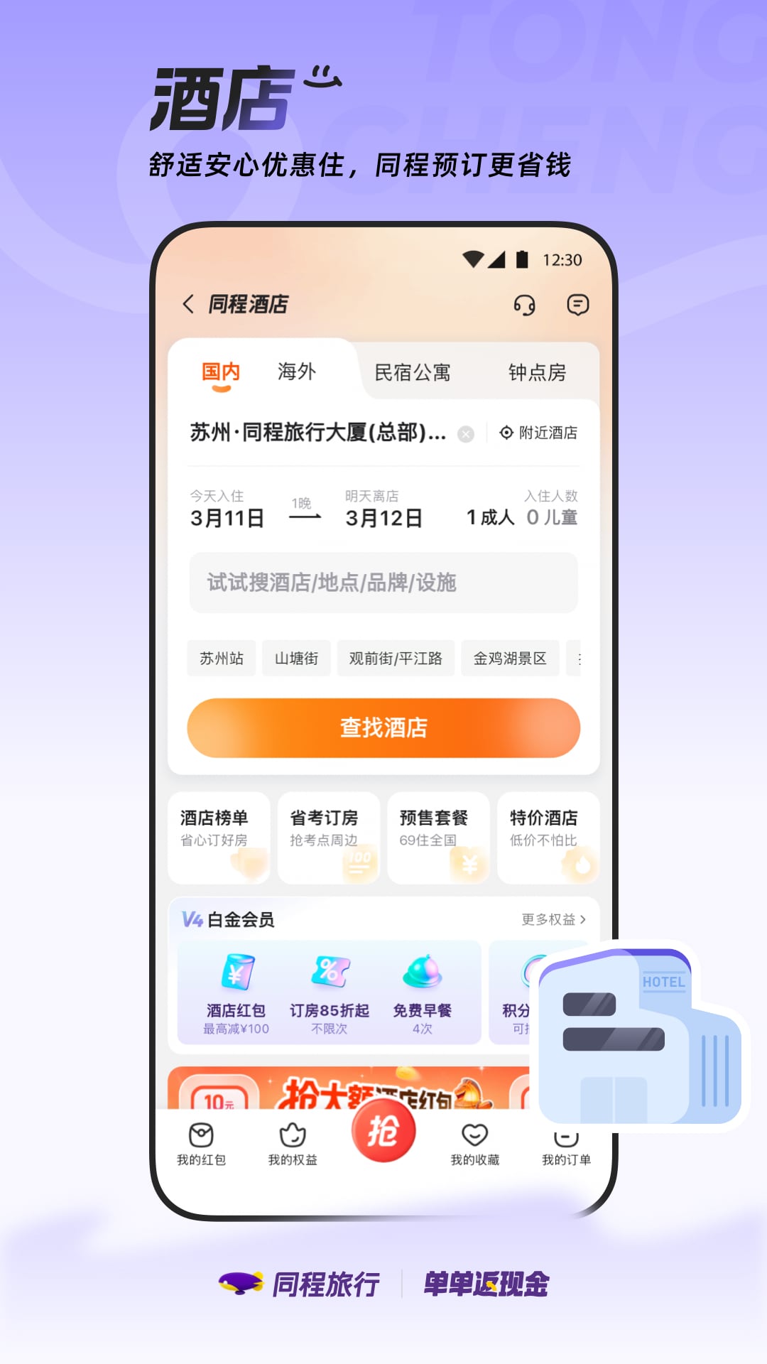3、酒店:百万家酒店覆盖国内海外,钟点房/品牌连锁/民宿等多形态应有尽有,亲子/差旅/度假等多场景一应俱全。