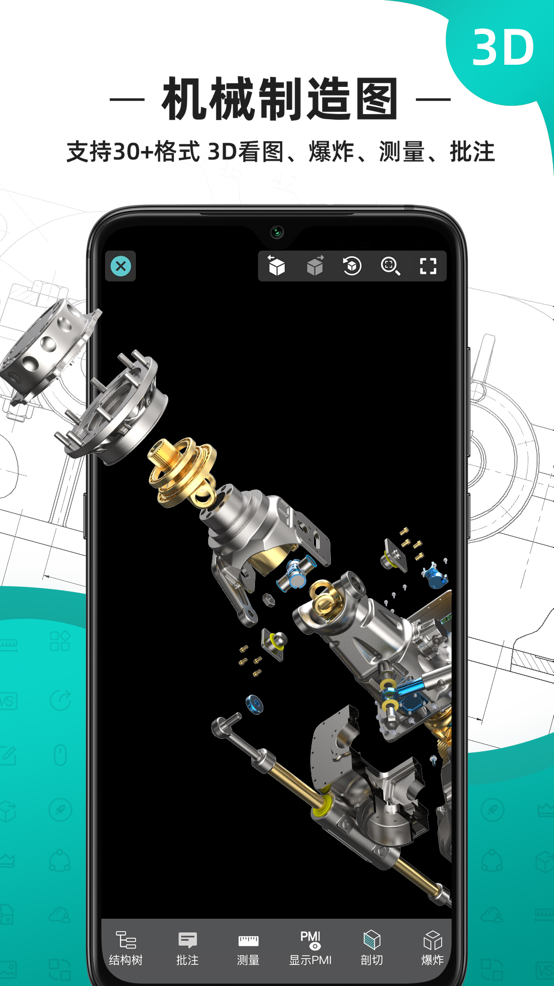 CAD看图王支持DWG快速看图绘图、机械制造三维模型看图测量、批注标注、编辑制图、浏览PDF,累计用户1亿+。支持AutoCAD、浩辰CAD、天正、BIM、SolidWorks、NX、CATIA、Pro/E、Revit等二三维图纸,全面兼容天正T20V10,CAD图纸原生显示不失真,专业Fonts字体解析告别文字乱码;支持建筑、机械、制造设计软件.rvt/.sldprt/.sldasm/.asm/.prt等40+格式三维图纸浏览、结构树、剖切、爆炸,三维测量、批注与PMI显隐;DWG看图编辑、测量标注批注、图块统计、颜色填充、文字查找替换、PDF与CAD格式转换等,微信、QQ、邮箱、钉钉分发CAD图纸,实现手机、平板和电脑三端同步。