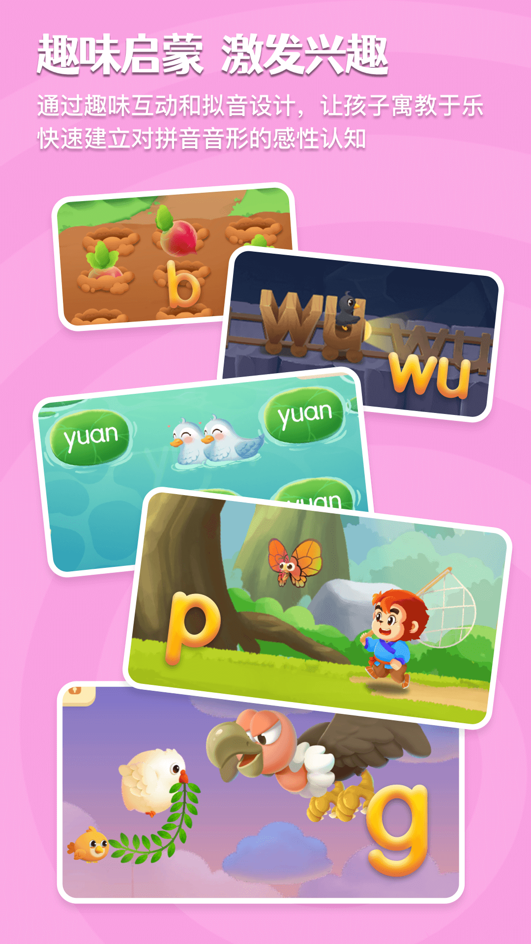 每个拼音字母教学环节都植入趣味互动,用动画+触控让孩子3秒进入状态。激发孩子主动性,家长放心。