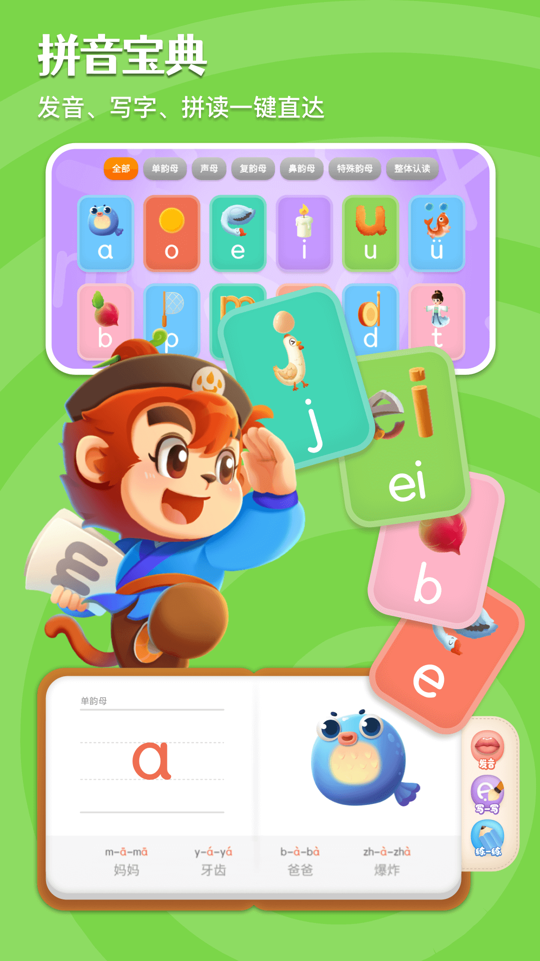 拼音宝典:直观展示孩子进度,发音、写字、拼读一键直达。