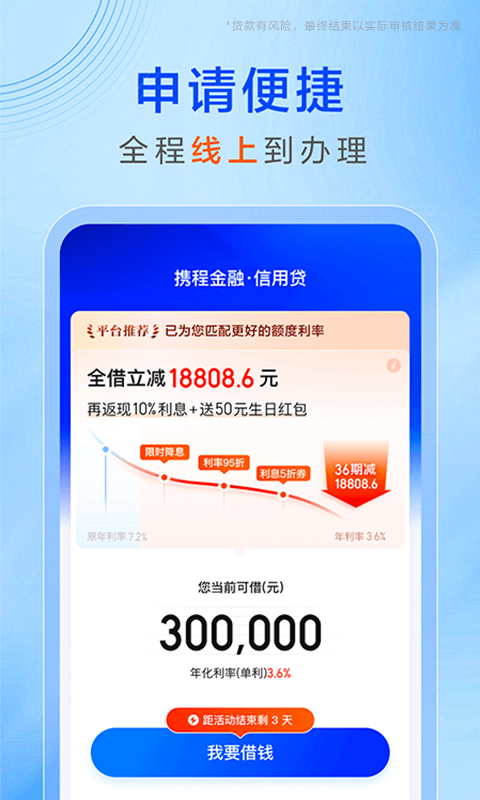 【携程品牌】携程旗下,信息加密放款有保障,为您提供全程保护