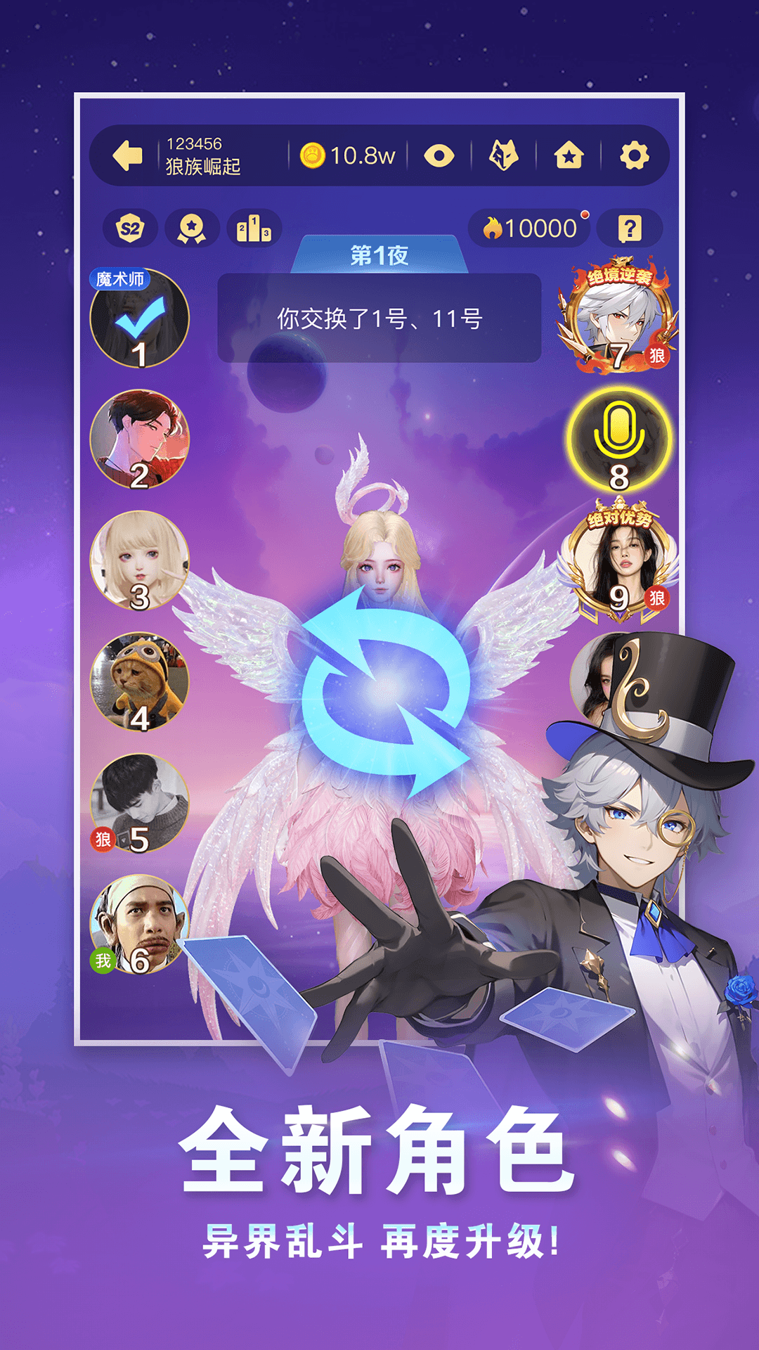 个性秀场:众多服饰装扮可供搭配,打造专属于你的独特形象,成为魔幻狼人杀世界里的一员。可爱甜心、时尚先锋、酷帅潮流,各种风格由你驾驭,还有狼人杀角色套装任你挑选,与众多玩家共同打造缤纷多彩的狼人杀世界!